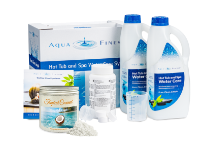 Das AquaFinesse Paket ist ein vollständiges Pflegesystem für Whirlpools, das das Wasser frisch und sauber hält. Weitere Produkte sind nicht erforderlich. Es genügt, einmal pro Woche die Flüssigkeit sowie eine Tablette hinzuzufügen. Das Paket ist für einen Anwendungszeitraum von drei bis sechs Monaten geeignet.