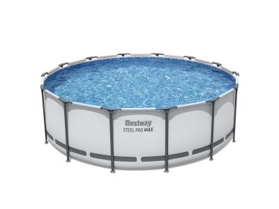 Suchen Sie einen geräumigen und stabilen Aufstellpool für den Garten? Dieser runde Steel Pro MAX Pool von Bestway hat einen Durchmesser von 427 cm und eine Höhe von 122 cm. Der stabile, rostbeständige Metallrahmen sorgt für Stabilität und eine lange Lebensdauer. Der Aufbau ist einfach und nach Herstellerangaben mit zwei Personen innerhalb einer halben Stunde erledigt.