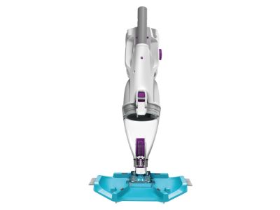Dank des flexiblen Saugkopfes erreichen Sie mühelos schwer zugängliche Ecken und Rundungen in Ihrem Pool. Der Poolsauger wird mit einem Akku betrieben, der eine Laufzeit von bis zu 50 Minuten hat, was für eine vollständige Reinigung mehr als ausreichend ist. Innerhalb von 2,5 Stunden ist der Akku wieder vollständig aufgeladen. Der gesamte aufgesaugte Schmutz, wie zum Beispiel Sand und Blätter, wird im internen 250-Mikron-Filter und dem geräumigen 1,1-Liter-Auffangbehälter gesammelt. Achten Sie darauf, dass der Motor während des Betriebs immer unter Wasser bleibt, um Schäden zu vermeiden.